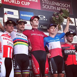 Voor een landje zonder bergen (waar blijft die berg Thijs?) doen we het in deze discipline op dit moment gewoon goed. Nee, niet goed, we doen het uitstekend. Prestaties bij de Elite zoals deze zijn een tijdje geleden, de laatste die “wel lekker meededen met de top” waren Bas van Dooren, Erwin Bakker, Bart Brentjens, en bovengenoemde Elsbeth Vink. Maar het gaat weer gebeuren, onthoud deze datum (11-03-2018) and mark my words. Dit jaar gaan “we” een World Cup MTB winnen!. Daar waar het XCO nationaal redelijk op zijn gat lag de afgelopen jaren ( minder wedstrijden, organisatoren die geen geld hadden, KNWU die struisvogelpolitiek bedreef… ) gaan we internationaal dit jaar “gewoon” lekker meedoen. En dat is goed voor deze sport en de sponsoren. Daar waar de UCI in 1994 besloot om 5 rijders op het podium goed te keuren zodat er meer exposure was voor de teams, zou het nu ook goed zijn als de KNWU en de NOS (en nee, 5 op het podium is geen mini play backshow…) eens samen om tafel gingen zitten en de aandacht voor het MTB eens onder de loep zouden nemen. RedBull doet natuurlijk fantastische dingen, maar nationaal mag er meer aandacht voor komen! Dit is het moment om het XCO ( gedeeltelijk) uit het slop te halen!. Vele mensen zijn daar al mee bezig, ook de renners doen hun stinkende best getuige bovenstaande, with a little help from their friends moet het nu toch mogelijk zijn om een inhaalslag te maken ?