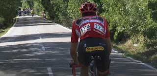 En dan ziede zon beeld.. dan zitte op de bank en staarde wa veur oe uit.. Want dan vuulde oe eigen eenzaam of nie? Dan zen t nog 50 lange kilometers…. En ja, da waren t ook… T verschil werd 30 seconden, minuutje, 2, 3.. maar ik bleef kijken. gewoon omda ge da verdient! Gij het ons land de leste week weer hoop gegeven da er un skon toekomst is veur t wielrennen in Nederland!