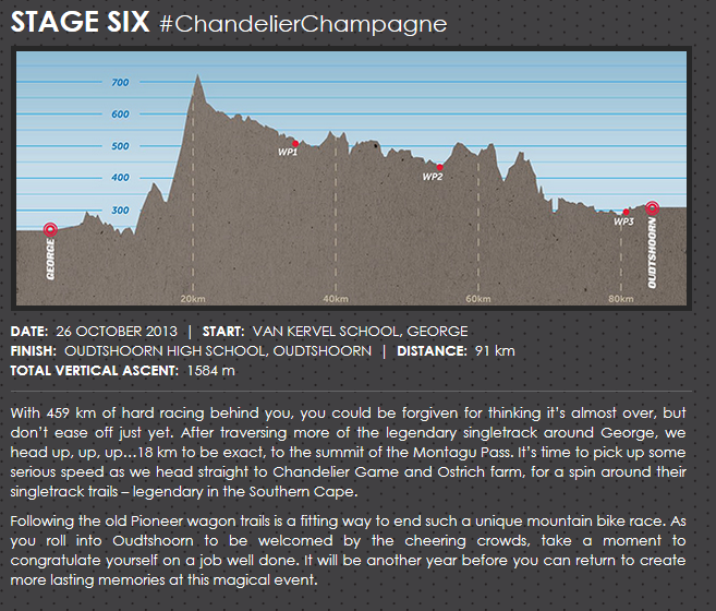 Maar daarna gewoon lekker afdalen naar Oudtshoorn en een fleske champagne open trekken, genieten van un stukske pizza ( al gesignaleerd ofnie?) en nagenieten van een skon week. Ook veur ons volgers. Alvast bedankt renners ! Mooi werk.