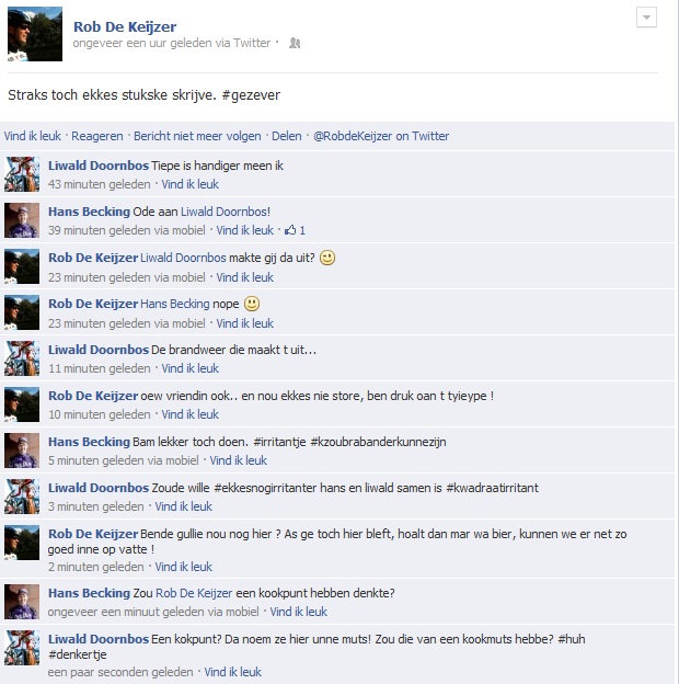 Wa dan wel wir raar is, bende zo goed bezig veur die jongens, krijgde ondertussen op Facebook t volgende: