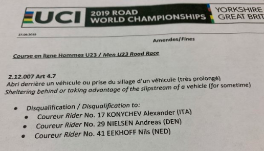 De UCI kwam met de volgende verklaring: